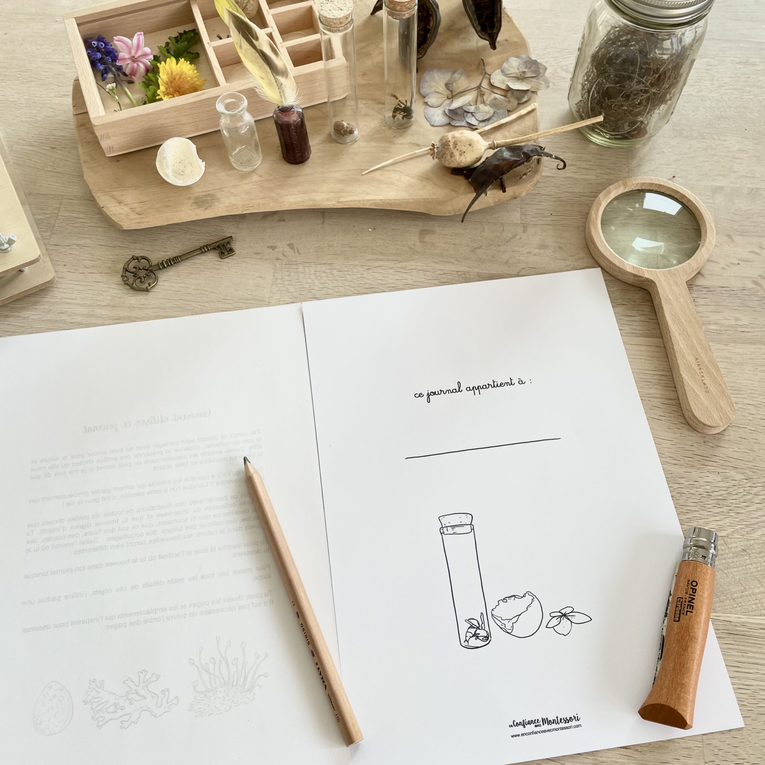 Ce journal a été pensé comme un compagnon de promenade, à emporter dehors ou à utiliser au retour d’une balade. L’enfant y retrouve des espaces pour dessiner, observer et noter ce qu’il voit autour de lui.